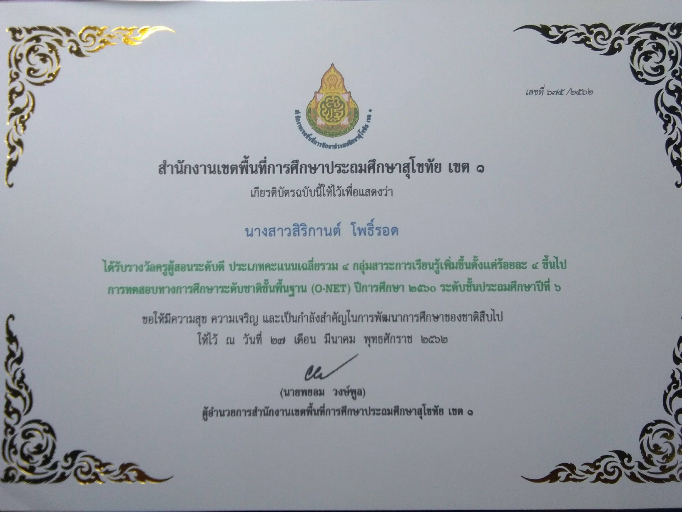 ชื่อผลงาน : รางวัลครูผู้สอนระดับดี