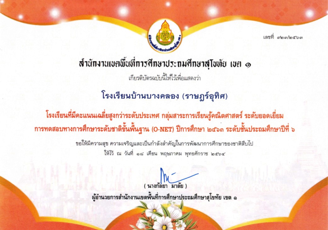 รางวัลโรงเรียน O-NET วิชาคณิตศาสตร์ สูงกว่าระดับประเทศ